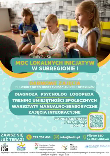 „Projekt jest współfinansowany ze środków Państwowego Funduszu Rehabilitacji Osób Niepełnosprawnych w ramach programu Moc Lokalnych Inicjatyw – edycja 2025”